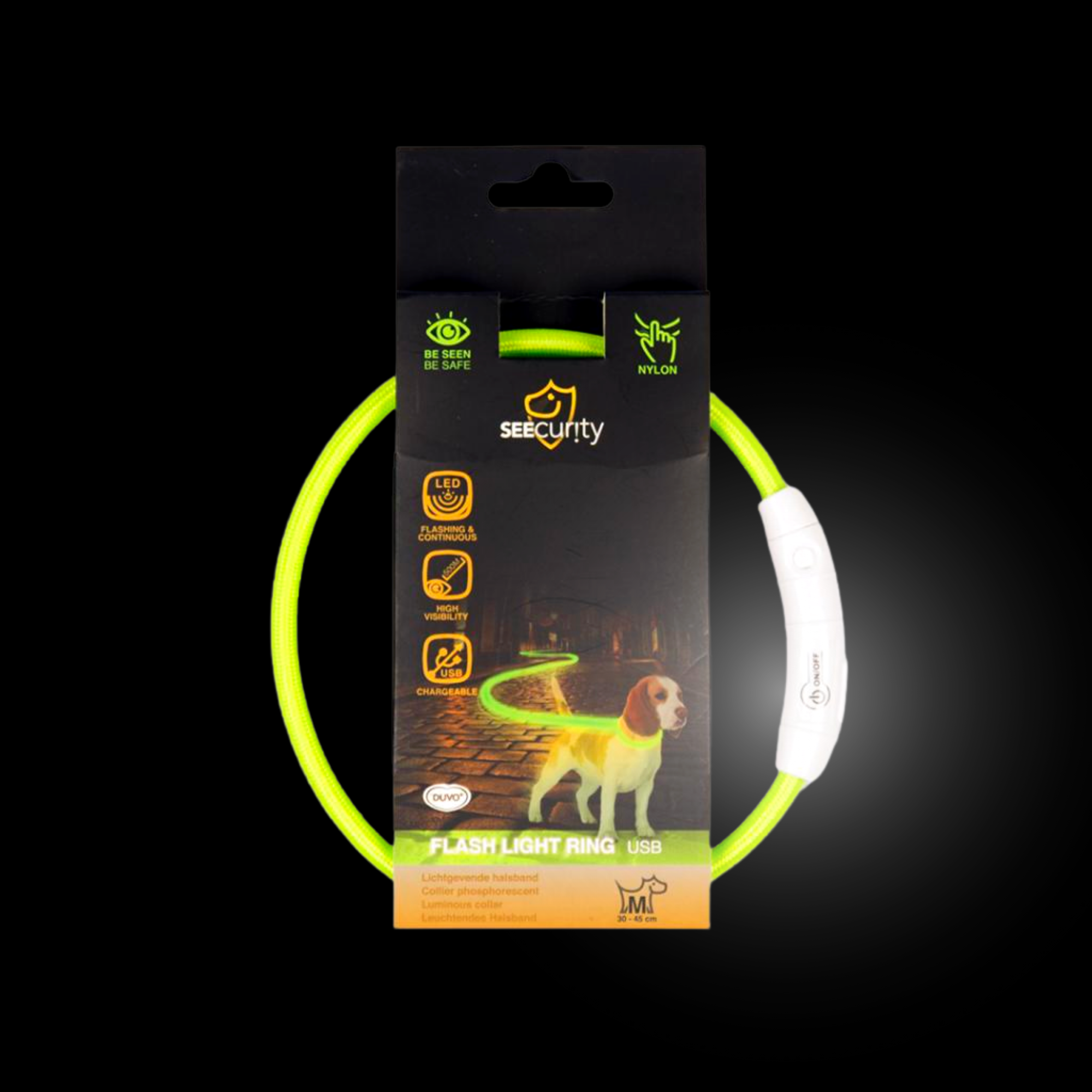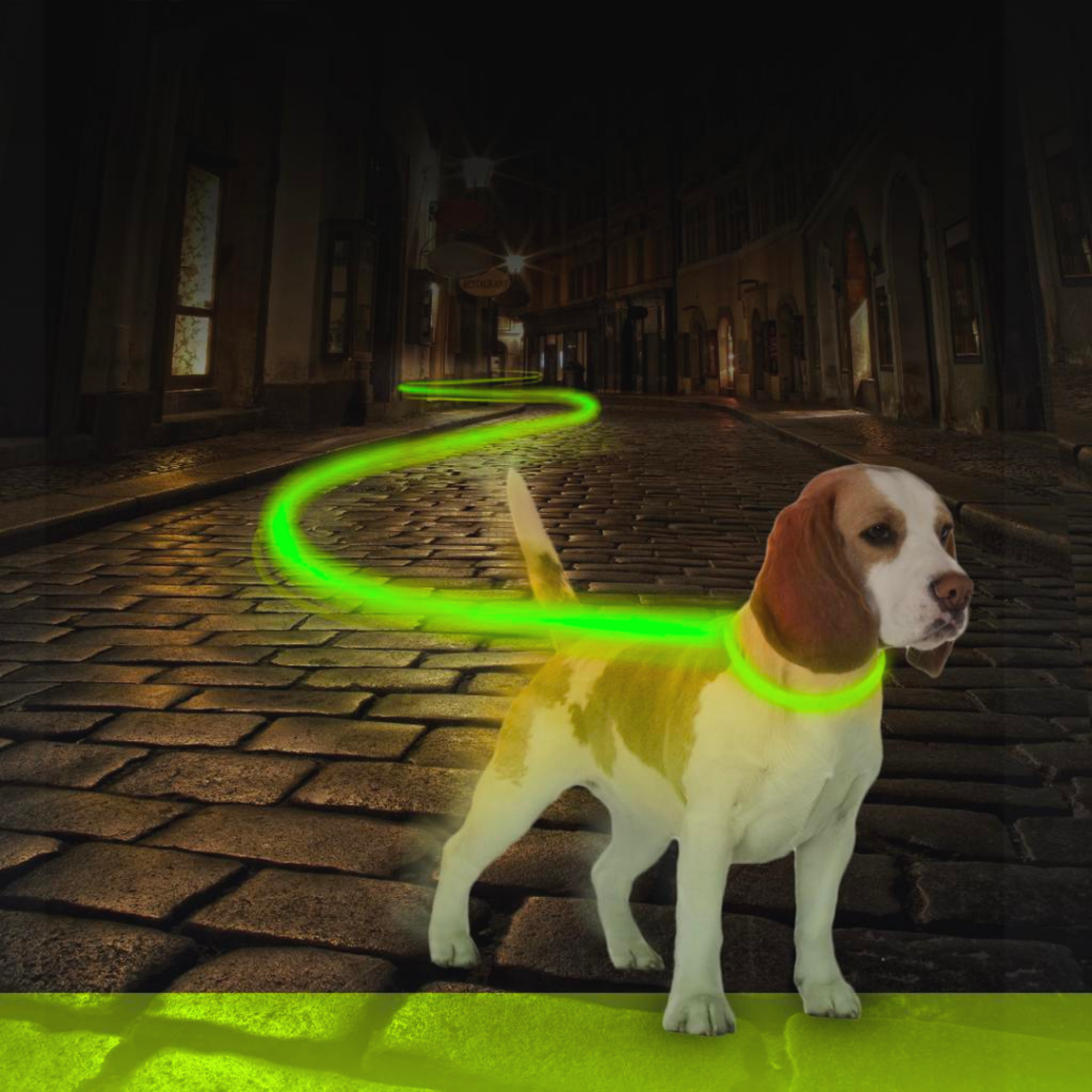 Светящийся ошейник для собак c USB-зарядкой, зеленый, DUVO+ , Бельгия