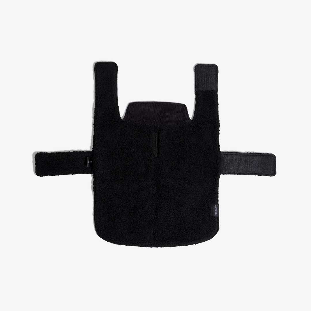 Резинки для лап регулируются и предотвращают скольжение пальто по телу питомца. Обхват шеи и живота также регулируется.