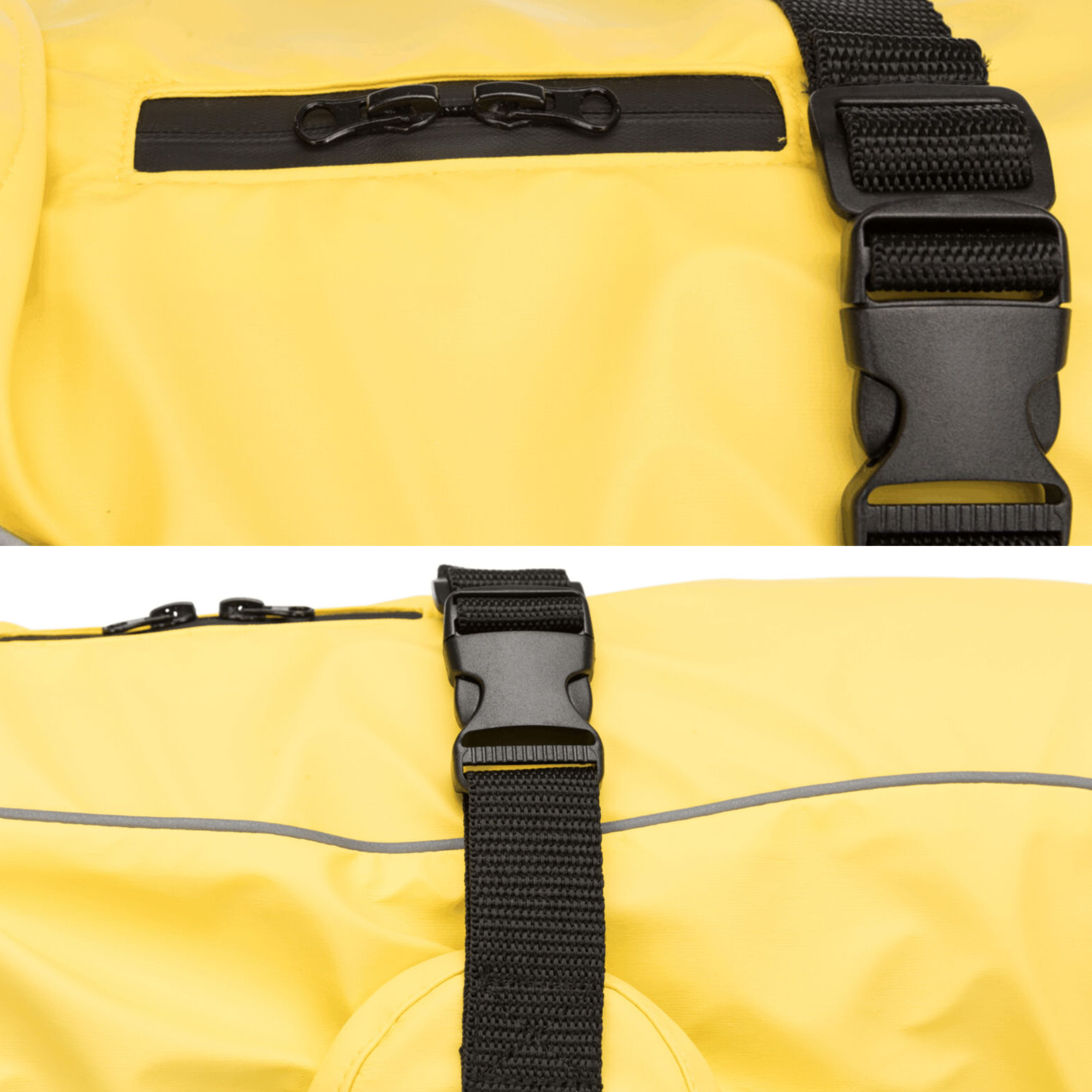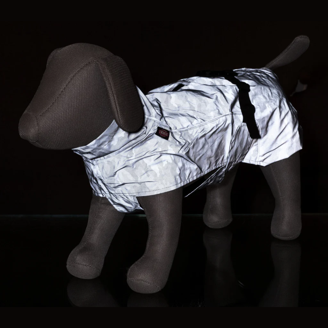 Светоотражающие кромки гарантируют, что ваша собака будет заметна в темноте. 2 водонепроницаемые молнии: на шее и в районе лопаток позволяют закрепить поводок к шлейке и к ошейнику вашей собаки.